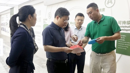 南寧市領導一行參觀了公司產品展廳、企業文化廳,詳細了解企業發展歷程及核心產品。雙方圍繞龐度環保生產經營模式、發展布局規劃等內容展開深入交流。